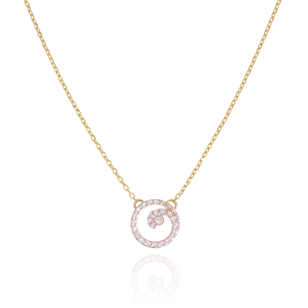 Złoty naszyjnik, celebrytka z brylantami próby 585. Wyjątkowo subtelny i pełen blasku naszyjnik typu celebrytka wykonany ze szlachetnego złota zachwyca swoją minimalistyczną formą. Delikatny łańcuszek z okrągłą zawieszką, którą zdobią drobne, starannie oprawione brylanty, które dodają całości elegancji i luksusowego charakteru. To ponadczasowy dodatek, idealny do codziennych stylizacji oraz na wyjątkowe okazje. Doskonały wybór dla osób ceniących klasykę w nowoczesnym wydaniu. Zapraszamy do zakupu!