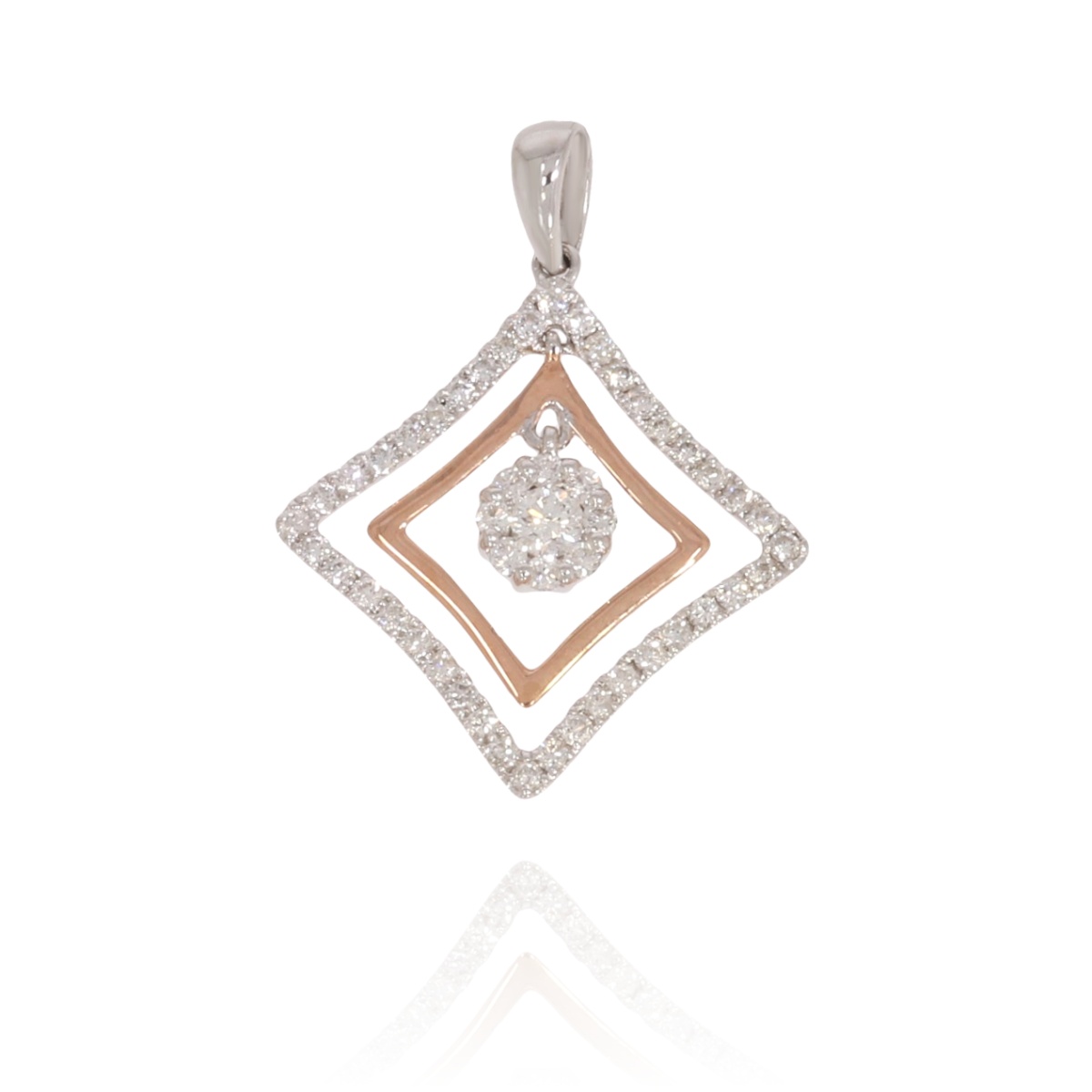 Zawieszka z brylantami w biało-różowym złocie próby 585. Zachwycająca zawieszka, która łączy w sobie ponadczasową elegancję i nowoczesny blask. Wykonana z najwyższej próby biało-różowego złota, stanowi idealne tło dla brylantów o wyjątkowej czystości i blasku, precyzyjnie oprawionych przez mistrzów jubilerstwa. Każdy detal tej kompozycji został dopracowany z niezwykłą starannością- od subtelnych linii złota po perfekcyjny układ kamieni, które w świetle tworzą zmysłową grę refleksów. Zawieszka doskonale podkreśla szyję i dekolt, stając się symbolem klasy, wyrafinowania i kobiecej siły. To biżuteria, która nie potrzebuje okazji, sama staje się momentem wyjątkowym. Zapraszamy do zakupu!