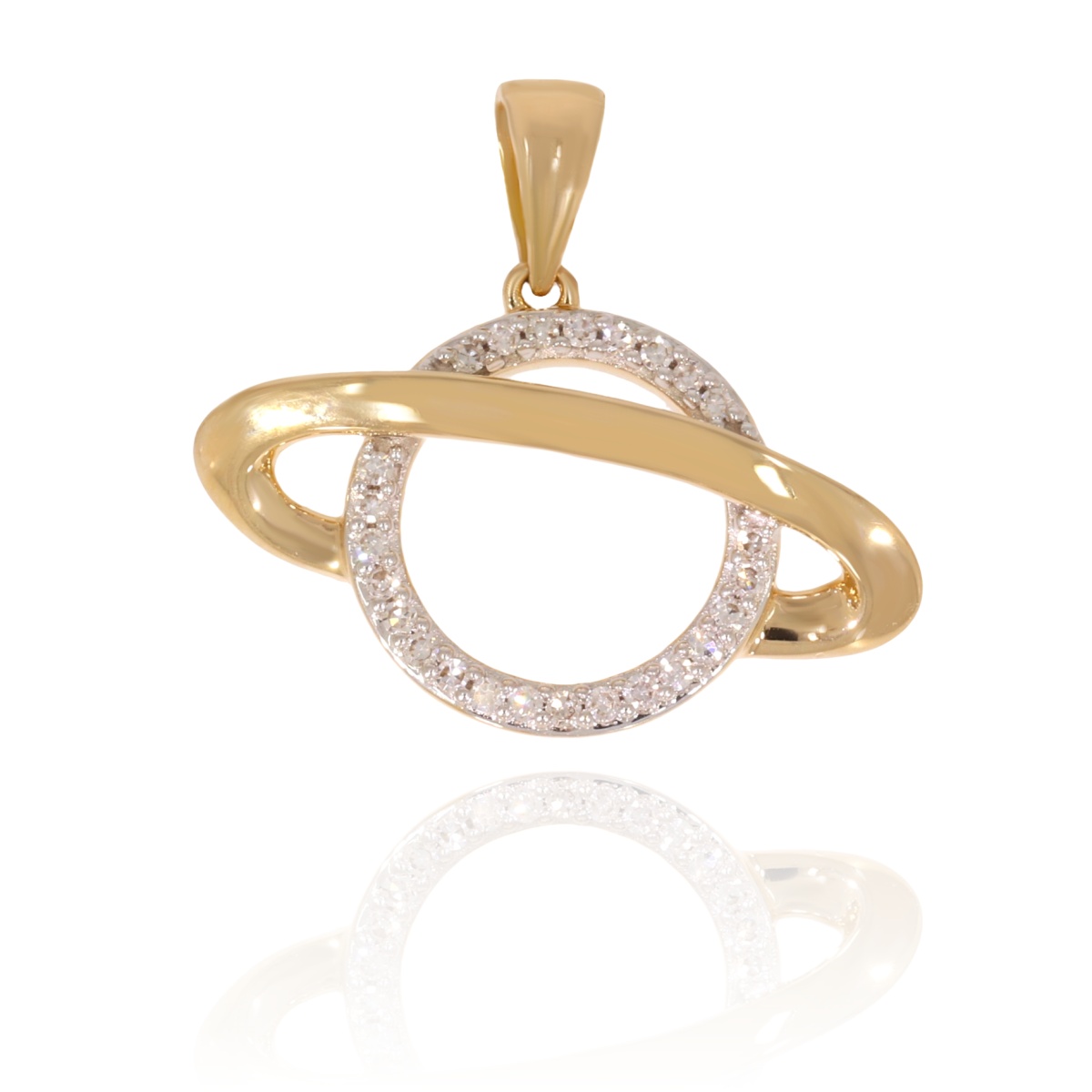 Złota zawieszka planeta próby 585. Ta subtelna zawieszka została wykonana z błyszczącego złota i lśniących brylantów przedstawia stylizowaną planetę z delikatną orbitą. Minimalistyczna forma nadaje jej nowoczesny, a jednocześnie ponadczasowy charakter. To idealny dodatek dla osób kochających kosmiczne motywy, symbole marzeń i nieograniczonych możliwości. Świetnie sprawdzi się jako codzienna ozdoba lub wyjątkowy prezent. Zapraszamy do zakupu!