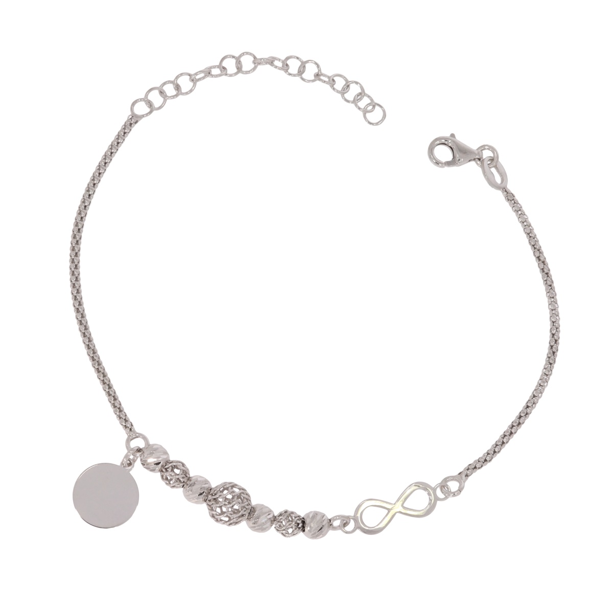 Srebrna bransoletka to połączenie klasycznej elegancji z najnowszymi trendami biżuteryjnymi. Wykonana ze srebra próby 925 zachwyca delikatnym połyskiem i ponadczasowym stylem. Bransoletka z wiszącą blaszką na rewersie okrągłej blaszki znajduję się wygrawerowany aniołek. Bransoletka z znakiem nieskończoności symbolizującym nieskończone uczucia. Doskonale komponuje się z codziennymi stylizacjami, ale też podkreśla wyjątkowość wieczornych kreacji. Ta bransoletka to symbol kobiecej siły, subtelności i wyrafinowanego smaku. Idealny prezent dla siebie lub bliskiej osoby. Zapraszamy do zakupu!