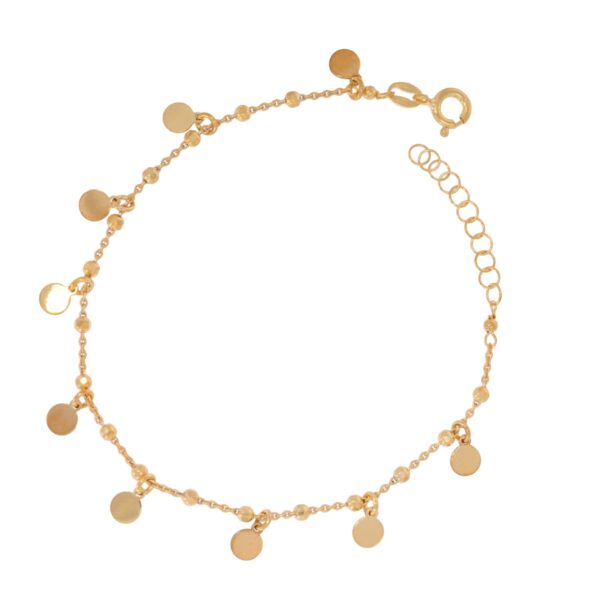 Srebrna złocona bransoletka z monetkami próby 925. Stylowa i elegancka bransoletka wykonana ze srebra, pokryta złoceniem, to modny dodatek, który zachwyca swoim blaskiem. Subtelne zawieszki w formie monetek nadają jej nowoczesnego charakteru i sprawiają, że świetnie pasuje zarówno do codziennych stylizacji, jak i na wyjątkowe okazje. To idealny pomysł na prezent elegancki, symboliczny i zawsze na czasie. Bransoletka z monetkami podkreśli kobiecy styl, dodając lekkości i oryginalnego uroku każdej kreacji. Zapraszamy do zakupu!
