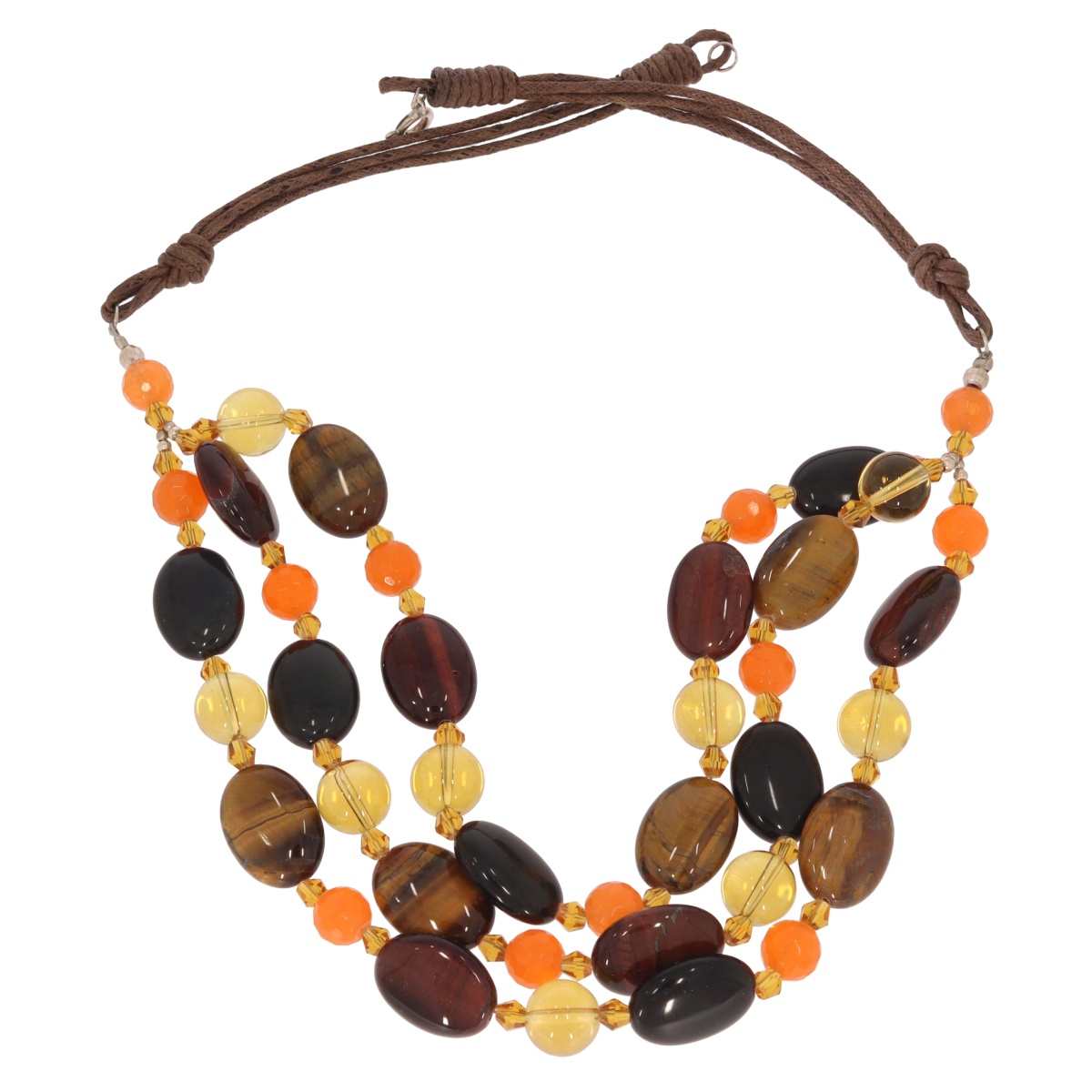 Elegancki naszyjnik wykonany z różnych kamieni to harmonijne połączenie siły, równowagi i ponadczasowego stylu. Wyjątkowe kamienie znajdujące się w naszyjniku takie jak tygrysie oko zachwycają charakterystycznym złoto-brązowym połyskiem, który symbolizuje odwagę, pewność siebie i ochronę. Kwarc, znany jako kamień energii i klarowności, dopełnia całość, nadając biżuterii subtelności i lekkości.