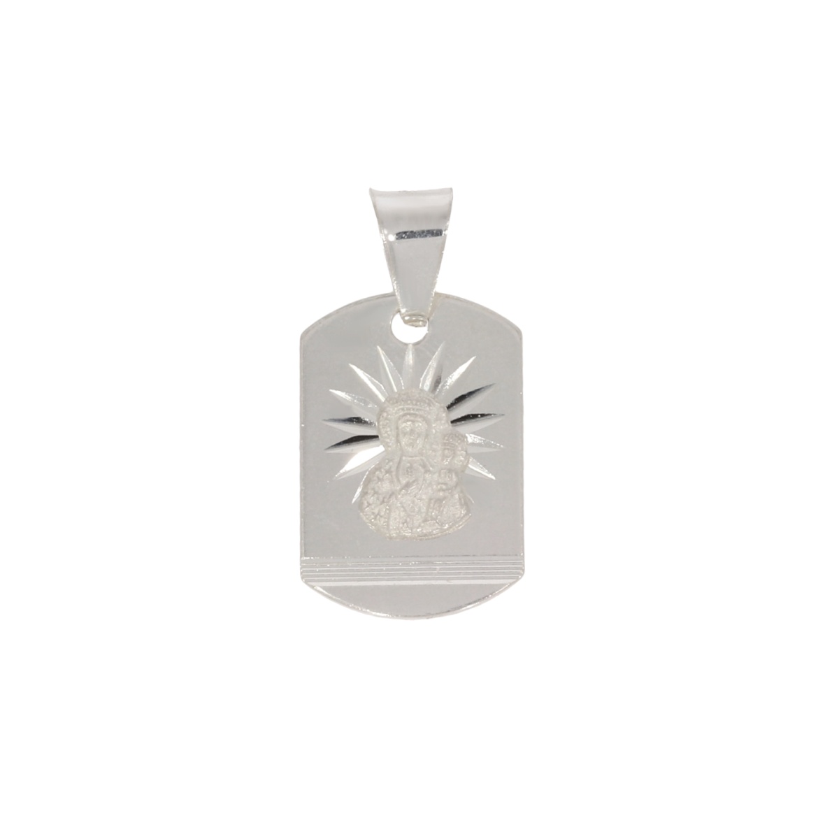 Srebrny medalik z wizerunkiem Matki Bożej Częstochowskiej z Dzieciątkiem Jezus to biżuteria o głębokim znaczeniu religijnym i duchowym. Inspiracją jest cudowny obraz z Jasnej Góry- jeden z najważniejszych symboli wiary w Polsce. Wizerunek Maryi tulącej Dzieciątko przypomina o miłości, opiece oraz nieustannej obecności Boga w codziennym życiu.