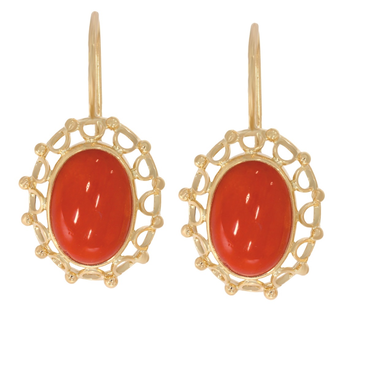 Złote kolczyki z koralem naturalnym próby 585. Kolczyki wykonane ręcznie w naszej pracowni przez mistrzów złotnictwa. Oryginalny wzór kolczyków na zapięciu francuskim doda uroku i wyjątkowości każdej kreacji. Koral to organiczny minerał, który jest tworzony przez kolonie małych organizmów zwanych koralowcami. Te organizmy żyją w ciepłych wodach morskich i wytwarzają twardą substancję w celu ochrony swojego ciała. Koral jest znany przede wszystkim ze swojej charakterystycznej czerwonej barwy, ale występuje również w innych kolorach, takich jak czarny, biały, różowy czy niebieski. Koral ma wiele fascynujących właściwości, zarówno zdrowotnych, jak i duchowych. W kontekście zdrowia, koral jest znany ze swojego pozytywnego wpływu na krążenie krwi. Pomaga w poprawie ukrwienia organizmu oraz wzmacnia układ odpornościowy. Ponadto, korzystne właściwości korala obejmują łagodzenie stanów zapalnych i wspomaganie gojenia się ran. Jeśli chodzi o aspekt emocjonalny i duchowy, koral jest uważany za kamień energii życiowej. Pomaga w zwiększaniu witalności i energii, co jest szczególnie ważne w sytuacjach, gdy czujemy się zmęczeni lub przytłoczeni. Ponadto, korzystne właściwości korala obejmują ochronę przed negatywnymi wpływami i promowanie harmonii wewnętrznej. Zapraszamy do zapoznania się z naszą pełną ofertą złotej biżuterii z koralem naturalnym.