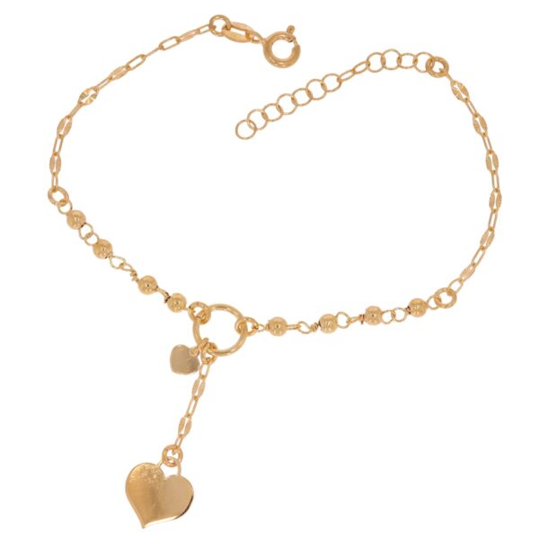 Srebrna złocona bransoletka z serduszkami próby 925. Stylowa i elegancka bransoletka wykonana ze srebra, pokryta złoceniem, to modny dodatek, który zachwyca swoim blaskiem. Subtelne zawieszki w kształcie serduszka nadają jej nowoczesnego charakteru i sprawiają, że świetnie pasuje zarówno do codziennych stylizacji, jak i na wyjątkowe okazje. To idealny pomysł na prezent elegancki, symboliczny i zawsze na czasie. Bransoletka z serduszkami podkreśli kobiecy styl, dodając lekkości i oryginalnego uroku każdej kreacji. Zapraszamy do zakupu!