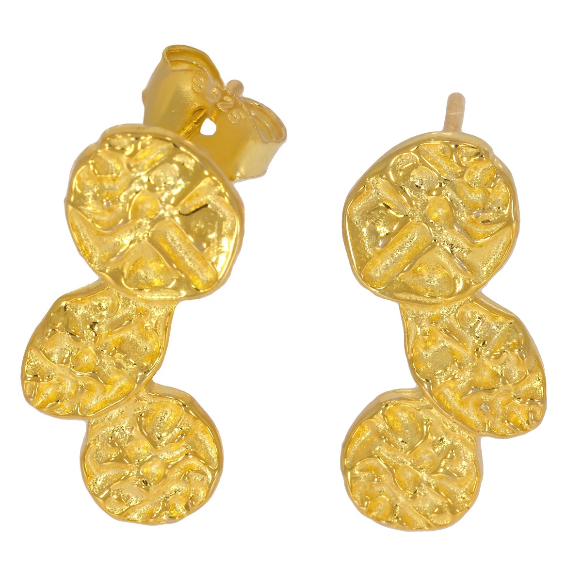 Srebrne, złocone kolczyki na sztyft to połączenie elegancji, delikatnego blasku i nowoczesnego wzornictwa. Wykonane z wysokiej jakości srebra pokrytego trwałą warstwą złocenia, zachwycają swoim subtelnym, ciepłym odcieniem oraz wyjątkową trwałością. Klasyczne zapięcie na sztyft sprawia, że są wygodne w noszeniu i idealnie dopasują się do codziennych oraz bardziej eleganckich okazji. To idealny wybór dla kobiet, które kochają biżuterię łączącą ponadczasowy styl z odrobiną nowoczesnego blasku. Sprawdzą się jako subtelny dodatek do pracy, na spotkania, a także jako prezent pełen elegancji i uroku.