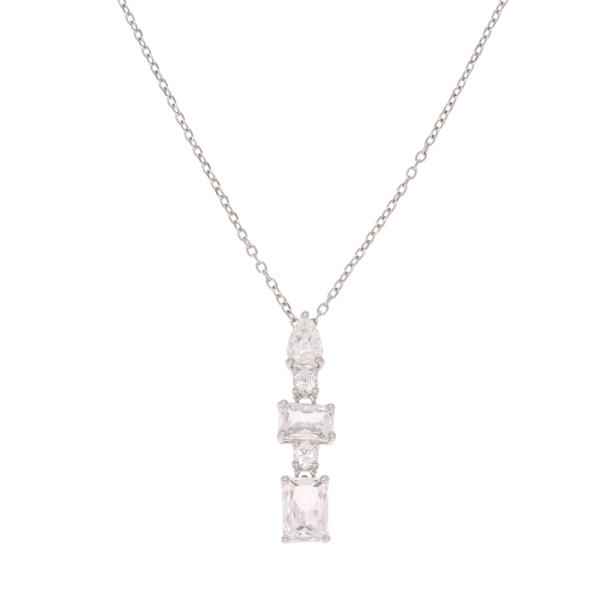 Srebrny naszyjnik z cyrkoniami próby 925. Delikatny srebrny naszyjnik ozdobiony lśniącymi cyrkoniami to biżuteria, która zachwyca subtelnym blaskiem i nowoczesnym stylem. Doskonale dopełni suknię ślubną, podkreślając wyjątkowy charakter tego dnia, a jednocześnie świetnie sprawdzi się w codziennych stylizacjach, dodając im klasy i elegancji. To wyjątkowy dodatek w ponadczasowym wydaniu, idealny również jako prezent dla bliskiej osoby. Połączenie prostoty i nowoczesności sprawia, że naszyjnik będzie ulubionym elementem biżuterii na wiele okazji. Zapraszamy do zakupu!