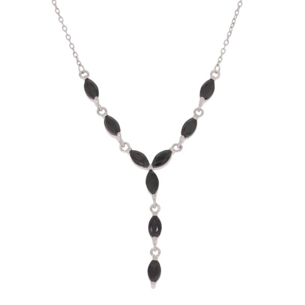 Srebrny naszyjnik z cyrkoniami próby 925. Delikatny srebrny naszyjnik ozdobiony lśniącymi ciemnymi cyrkoniami to biżuteria, która zachwyca subtelnym blaskiem i nowoczesnym stylem. Świetnie sprawdzi się w codziennych stylizacjach, dodając im klasy i elegancji. To wyjątkowy dodatek w ponadczasowym wydaniu, idealny również jako prezent dla bliskiej osoby. Połączenie prostoty i nowoczesności sprawia, że naszyjnik będzie ulubionym elementem biżuterii na wiele okazji. Zapraszamy do zakupu!