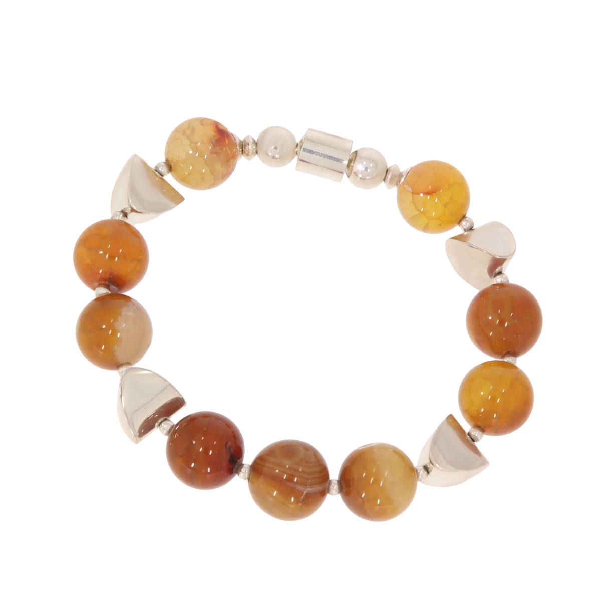 Wyjątkowa bransoletka wykonana z naturalnych agatów, które zachwycają subtelną kolorystyką i niepowtarzalnym kolorem kamieni. Każdy agat jest unikalny, dzięki czemu bransoletka ma indywidualny charakter i podkreśla naturalne piękno biżuterii. Bransoletka została wykończona solidnym, srebrnym zapięciem, które zapewnia komfort noszenia oraz trwałość.