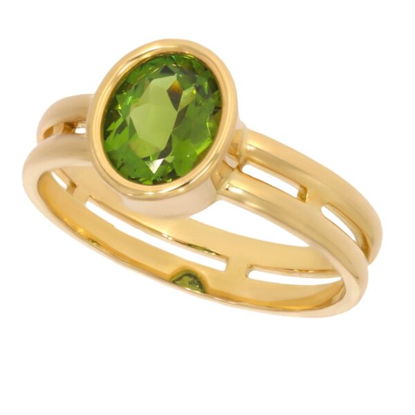 Złoty pierścionek z naturalnym turmalinem próby 585. Ręcznie wykonany pierścionek, w którym kunszt jubilerski łączy się z wyjątkowym pięknem naturalnego kamienia. Centralnym punktem jest turmalin, ceniony nie tylko za intensywną barwę, ale także za bogatą symbolikę. Kamień ten symbolizuje równowagę, ochronę, wewnętrzną siłę i harmonię, wspierając zarówno ciało, jak i ducha. Szlachetne złoto podkreśla elegancję pierścionka, a jego unikatowy design sprawia, że jest idealny dla osób ceniących biżuterię z duszą i charakterem.